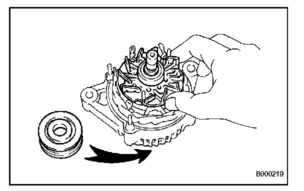 a. Install the generator pulley onto the rotor shaft by tightening the pulley nut by hand.