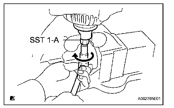 a. Hold SST 1-A with a torque wrench, then tighten SST 1-B counterclockwise to the specified torque.