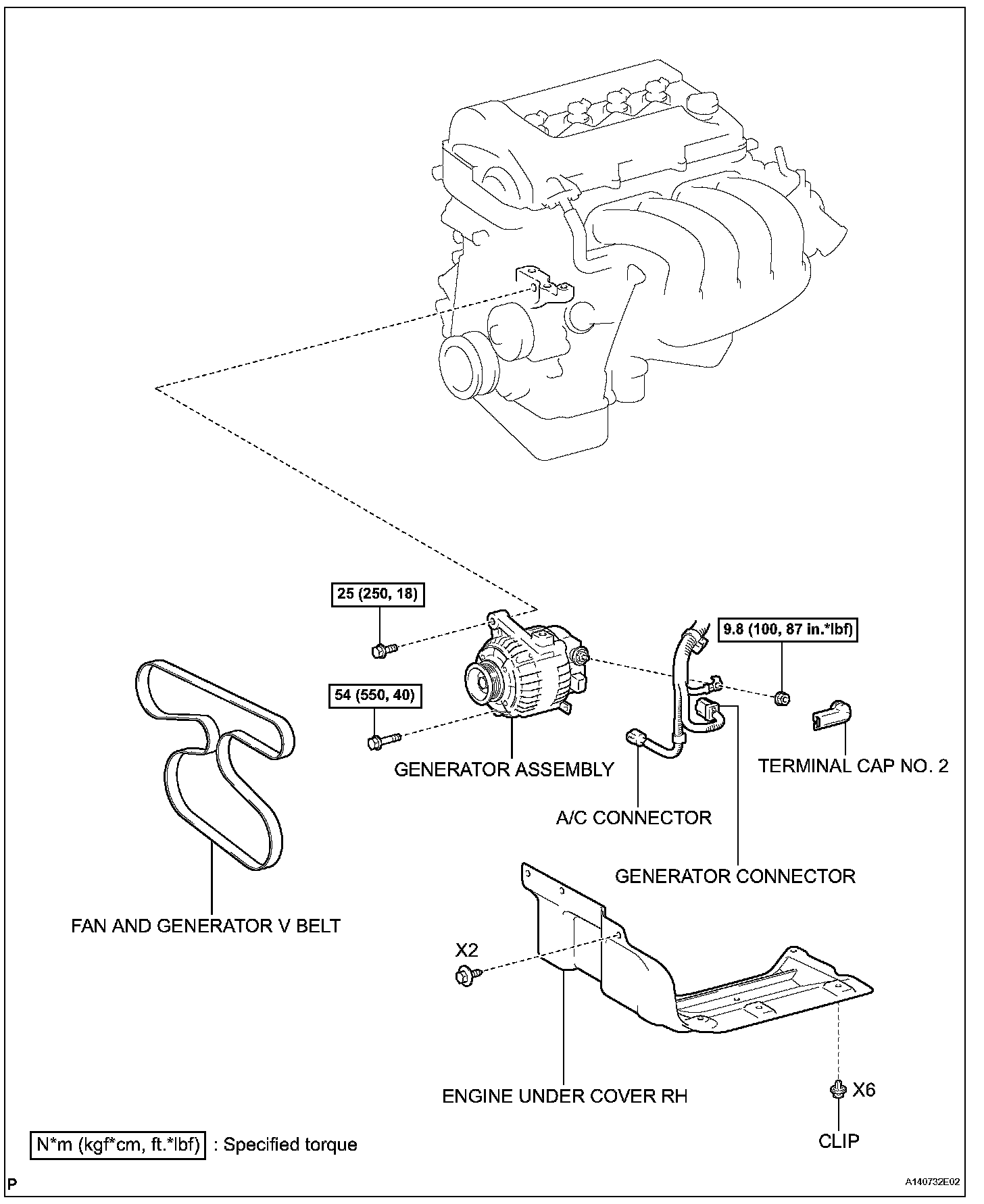 Torque: 9.8 N.m (100 kgf.cm, 87 in.lbf)