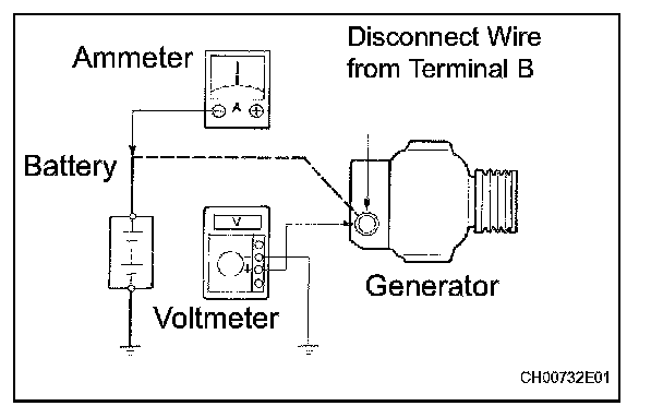 1. Disconnect to the wire from terminal B of the generator and connect it to the negative (-) lead of the ammeter.