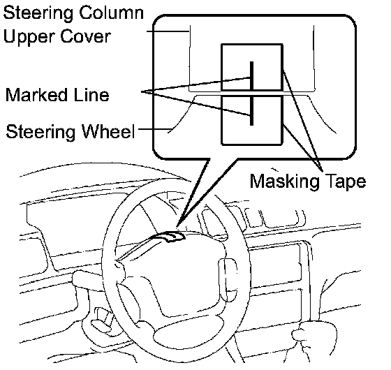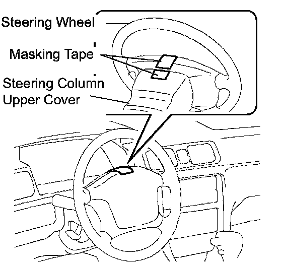 (1) Apply masking tape on the top center of the steering wheel and steering column upper cover.