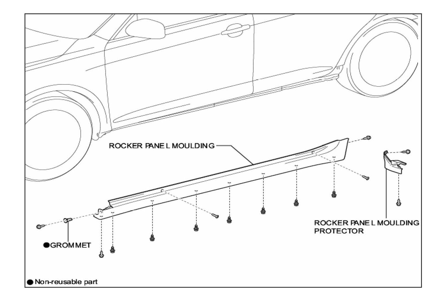 During collision repair and refinish operations it is often necessary to remove interior and exterior trim. Instructions and illustrations for removal and installation of trim can be found in the Interior and Exterior Panels/Trim section of model-specific Repair Manuals at www.techinfo.toyota.com. Collision repair professionals can view illustrations, step by step instructions, and helpful tips. Illustrations identify the type, quantity, and location of fasteners, as well as non-reusable items.