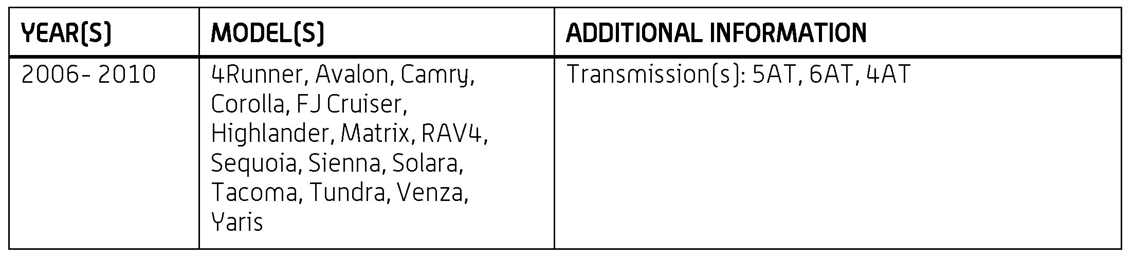 '06 - '10 Applicable Toyota Models