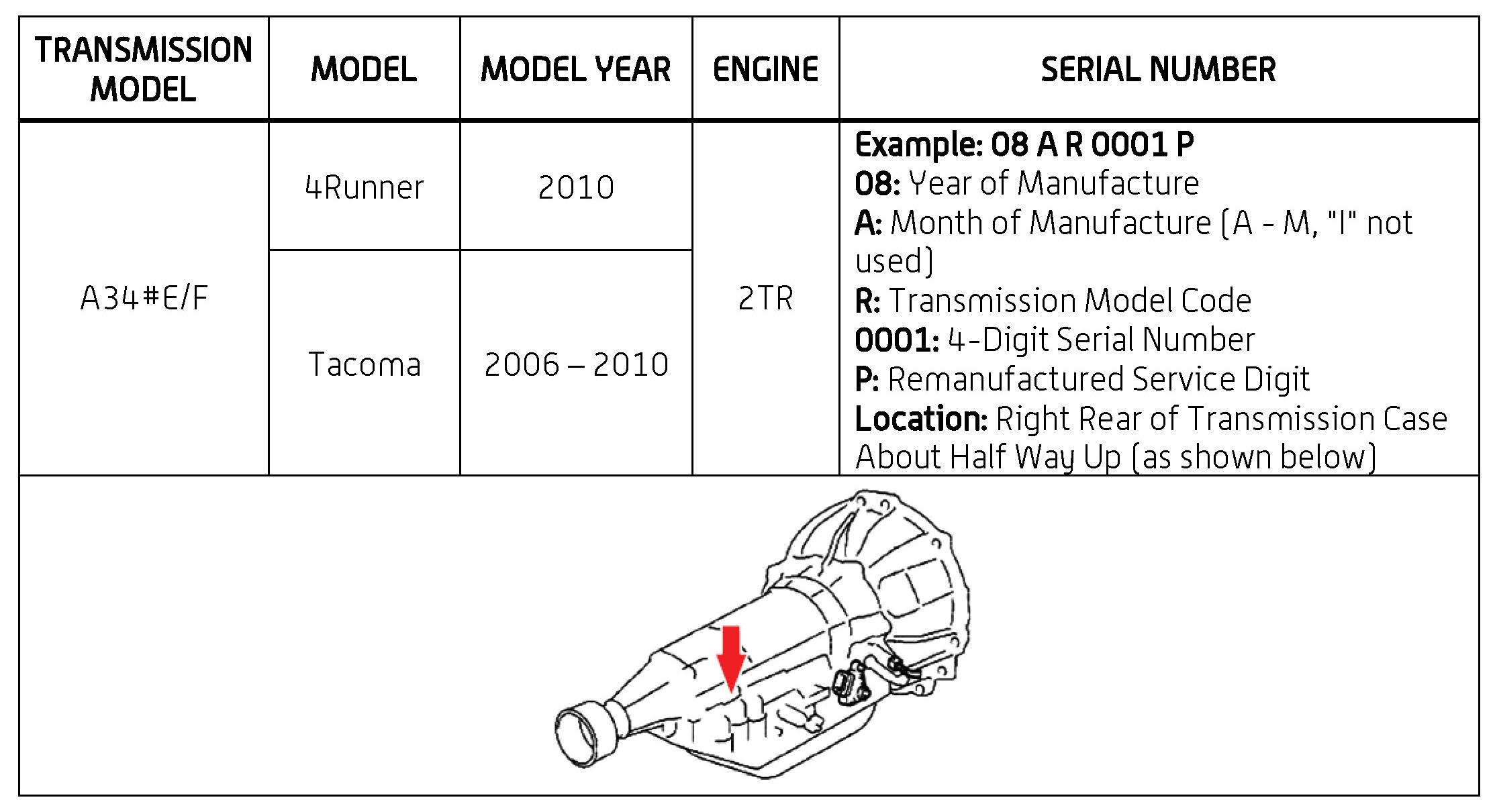 REMANUFACTURED AUTOMATIC TRANSMISSION SERIAL NUMBER LOCATION