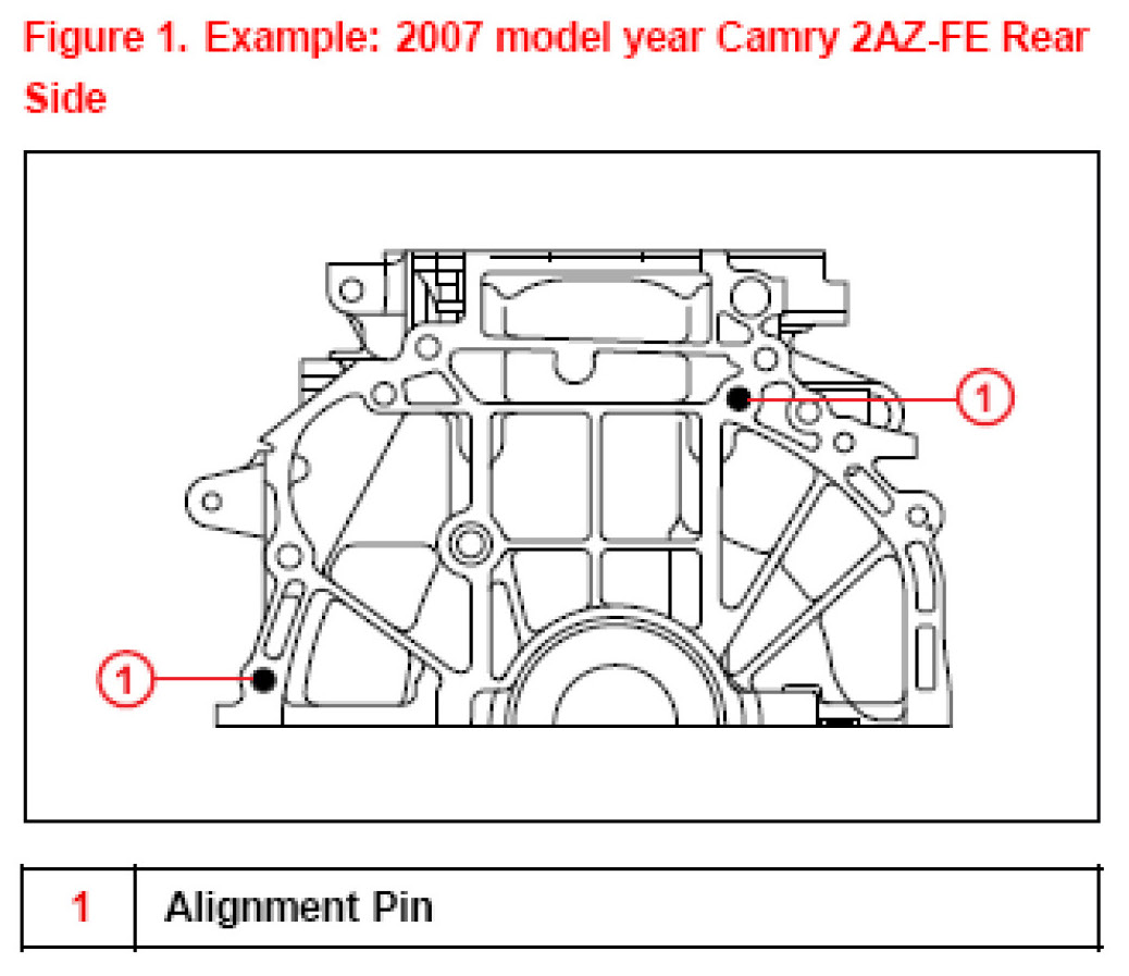The purpose of this TSB is to provide information regarding the installation of alignment pins during transmission/transaxle assembly installation. Missing alignment pins may result in incorrect alignment and failure of the transmission/transaxle assembly. Use the information below when installing a transmission/transaxle assembly.