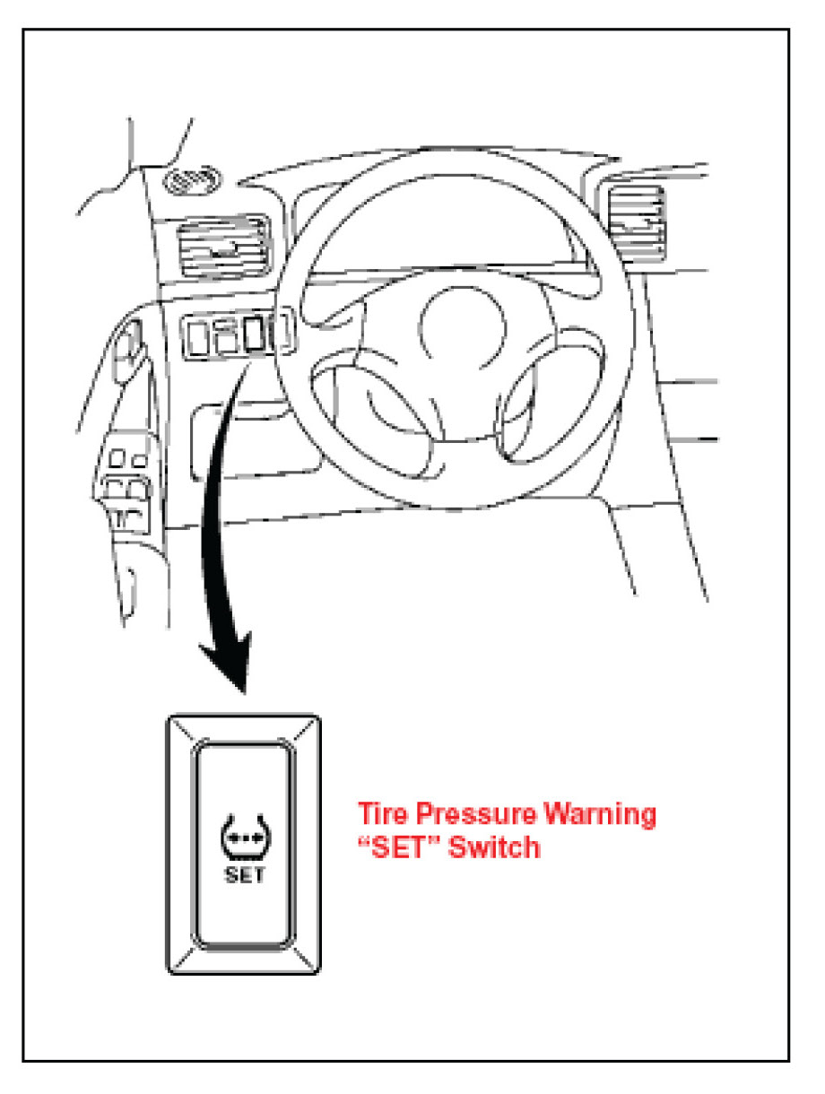 3. Push and hold the Tire Pressure Warning "SET" Switch for 3 seconds until the low tire pressure warning light blinks 3 times.