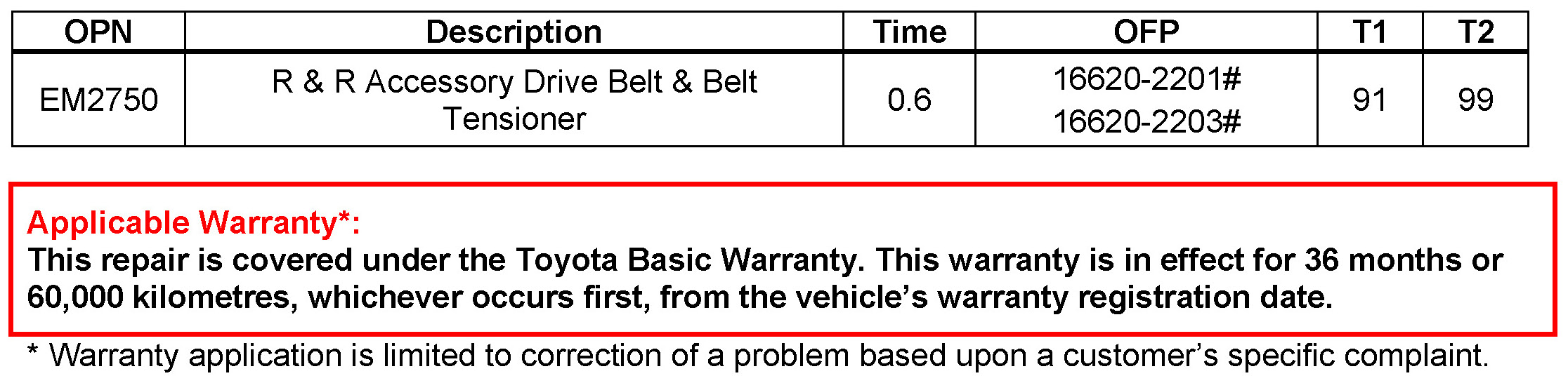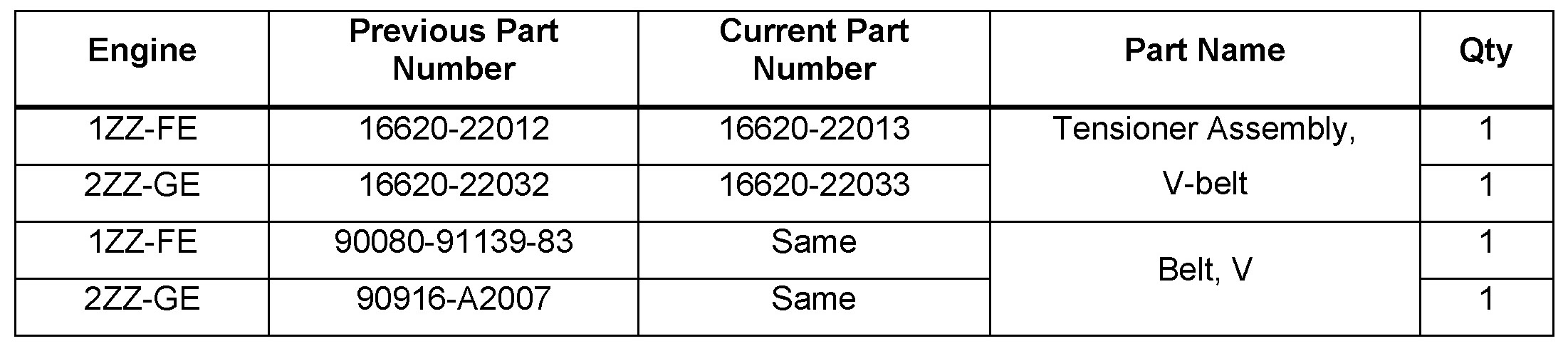 Some 1ZZ-FE and 2ZZ-GE engines may exhibit a squealing and/or rattling noise coming from the engine compartment during vehicle operation. The belt tensioner assembly has been improved to correct this condition.