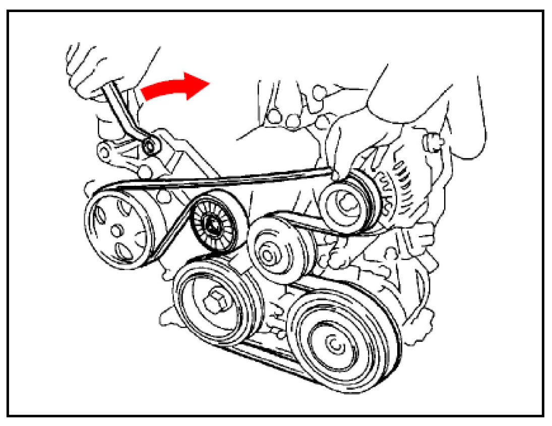 a. Turn the drive belt tensioner clockwise to relieve tension on the belt, and then remove the belt.
