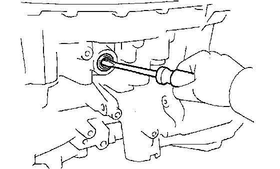 (f) Using a screwdriver, remove the manual valve lever shaft oil seal.
