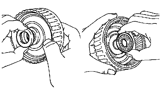 (b) Remove the thrust needle roller bearing and thrust bearing race from the front planetary ring gear.