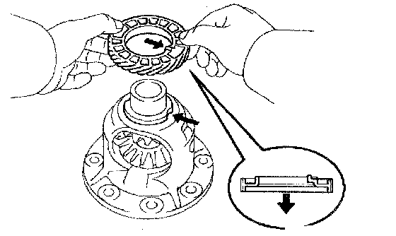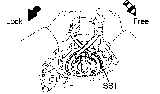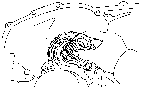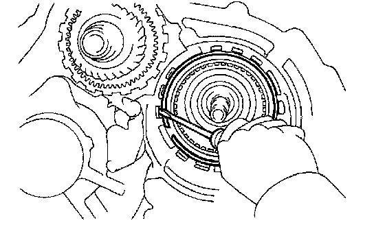 (a) In the place shown in the illustration (the space between the 1 way clutch outer race and case), push the underdrive 1 way clutch retainer in until you hear a "click".
