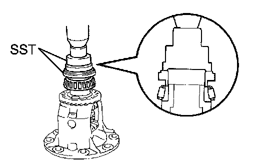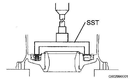 (a) Using SST and a press, install a new front drive pinion rear tapered roller bearing in to the differential case.