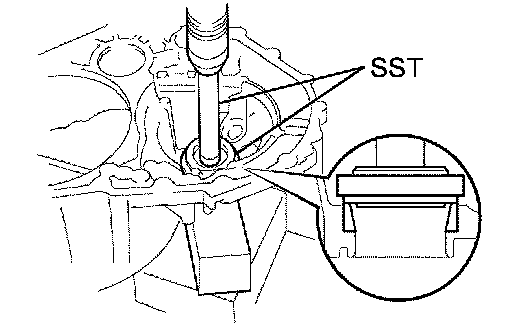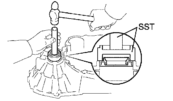 (a) Using SST and a hammer, drive in a new transaxle case oil seal.