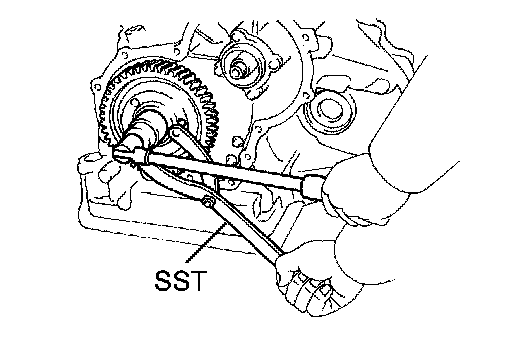 (b) Using SST to hold the counter drive gear, install the new counter drive gear nut.