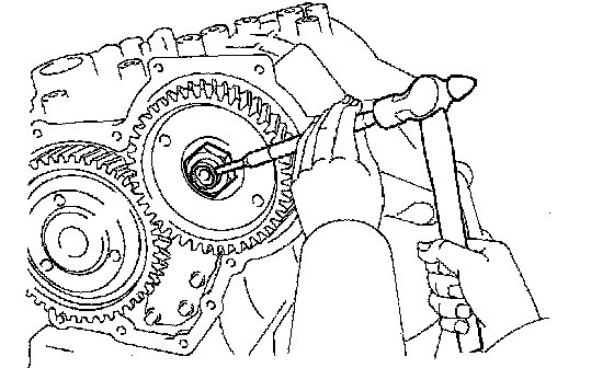 (a) Using a pin punch and hammer, stake the counter driven gear nut.