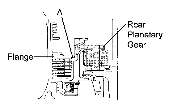 (d) Check the part "A" of the rear planetary gear assembly is below the upper surface of the flange.