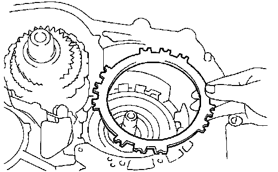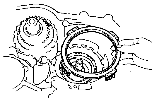 (c) Align the spline of the rear planetary gear assembly with the flukes of the discs and install the rear planetary gear assembly in to the 1st and reverse brake discs.