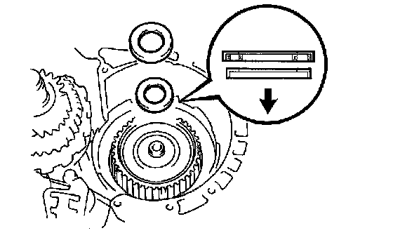 HINT: If the flukes of the discs are meshed correctly, the end of the bushing with the direct clutch will be flush with the surfaces of the forward clutch.