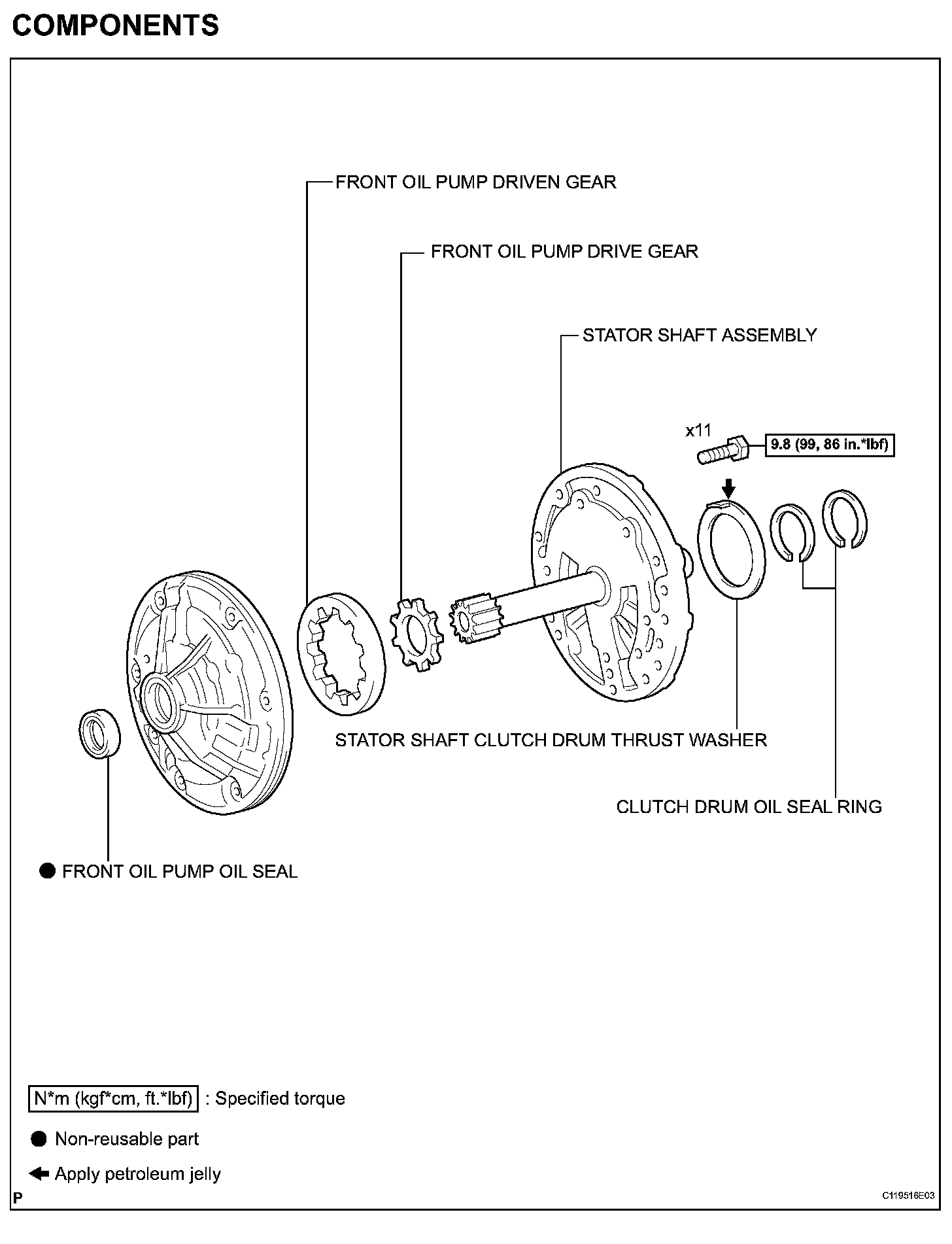 (a) Remove the stator shaft clutch drum thrust washer from the oil pump assembly.