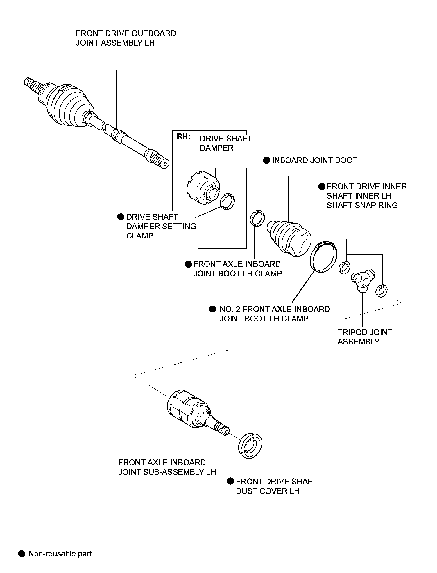 2. REMOVE FRONT AXLE INBOARD JOINT BOOT LH CLAMP