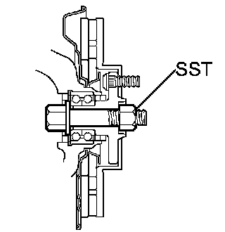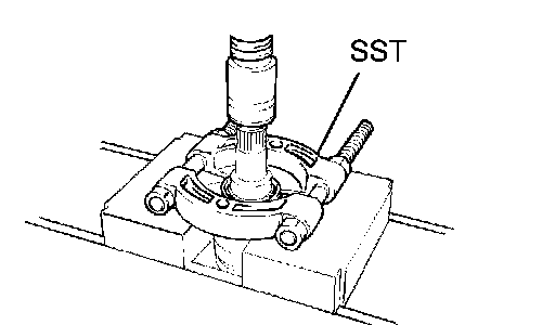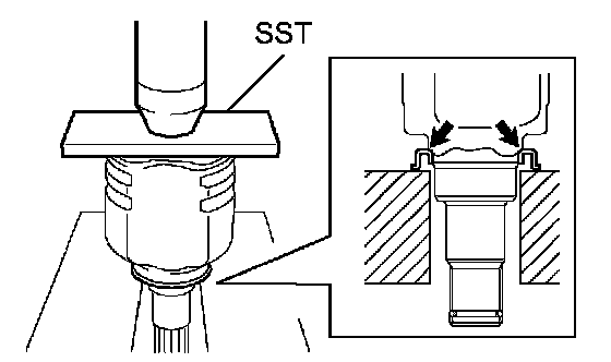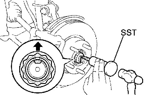 NOTICE: The hub bearing could be damaged if it is subjected to the vehicle weight, such as when moving the vehicle with the drive shaft removed. Therefore, make sure to support the hub bearing with SST when the vehicle weight is applied.
