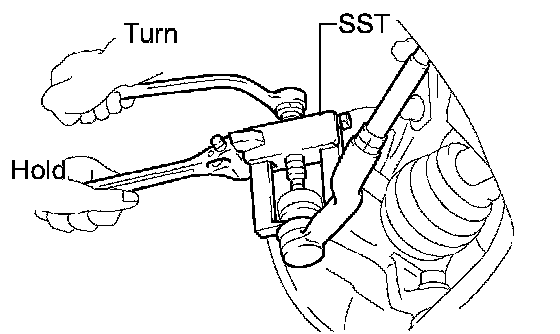 (b) Using SST, separate the tie rod end sub-assembly LH from the steering knuckle.