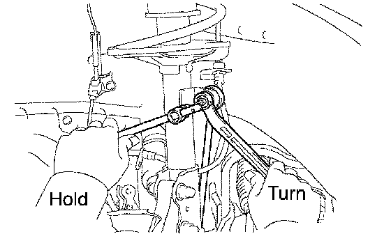 HINT: If the ball joint turns together with the nut, use a hexagon wrench (6 mm) to hold the stud.