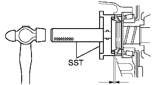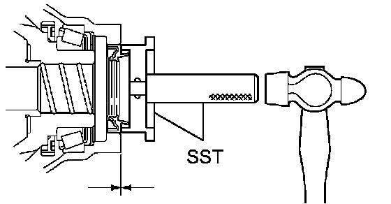 (b) Using SST and a hammer, install the oil seal.