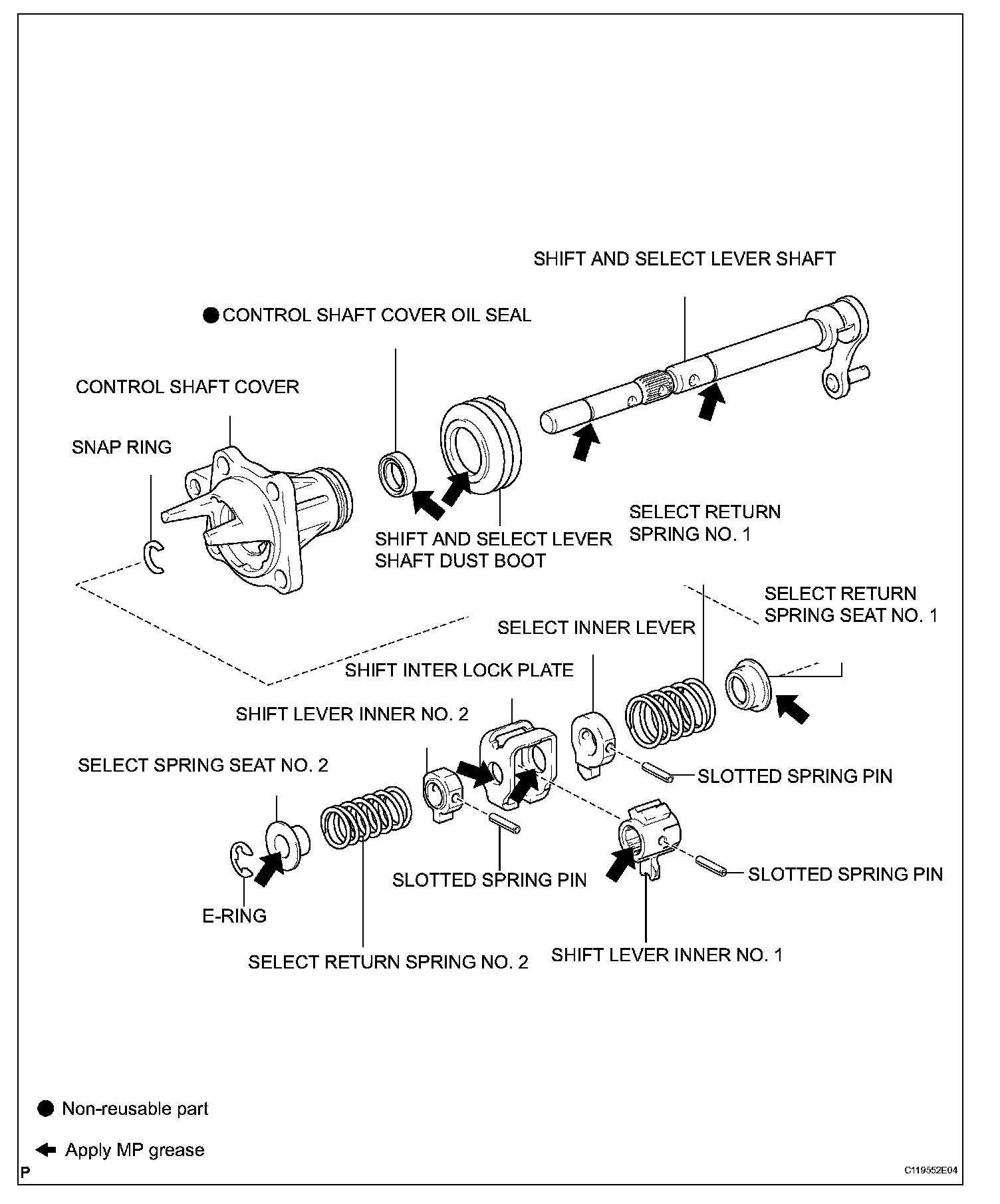 (a) Coat the select return spring seat No. 1 with MP grease, install it to the shift and select lever shaft.