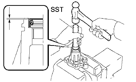 (a) Using SST and a hammer, install a new control shaft cover oil seal to the control shaft cover.