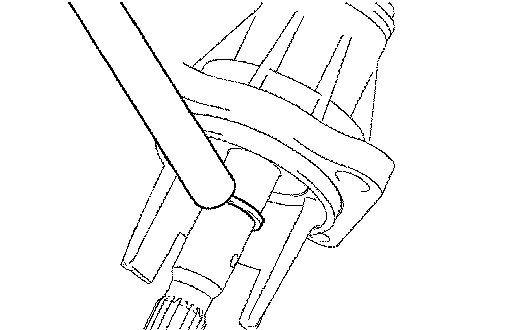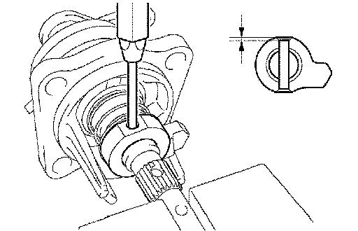 (d) Using a brass bar and a hammer, tap in the snap ring to the shift and select lever shaft.