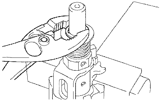 (c) Using a pin punch ([diameter] 5 mm) and a hammer, install the slotted spring pin to the select lever inner lever.