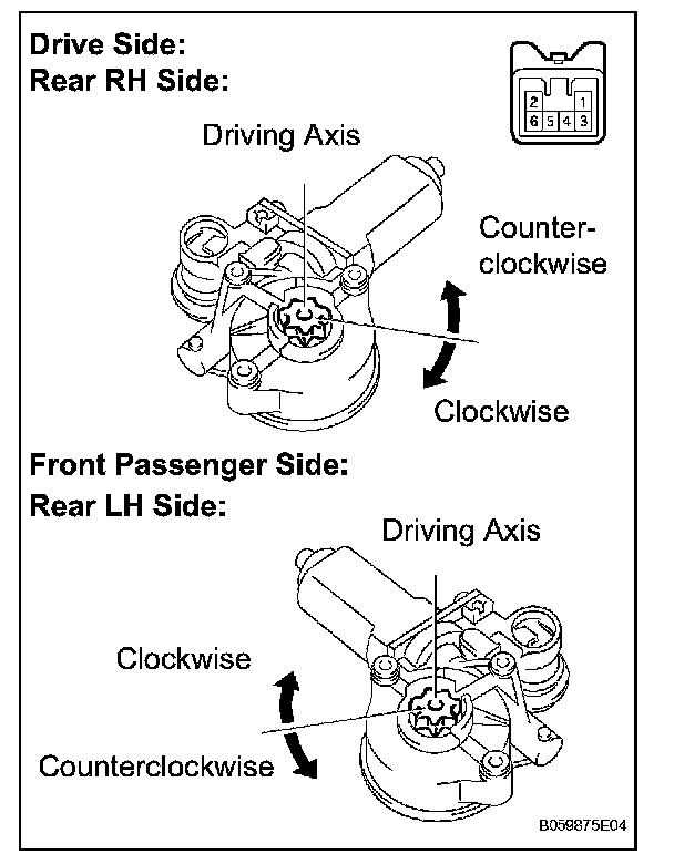 - The passenger's side and rear LH regulator motors should be inspected in the same procedure.