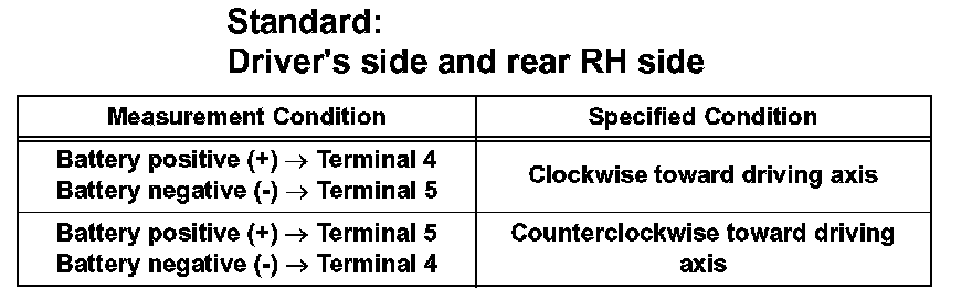 1. Check that the motor operates smoothly when battery positive voltage is applied to each terminal of the connector.