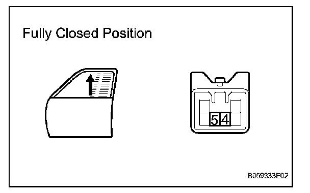3. When 60 seconds have elapsed after the door glass is fully closed, pull the power window switch up once again. Check how long it takes for the current to change from approximately 16 to 34 A into 1 A or less.
