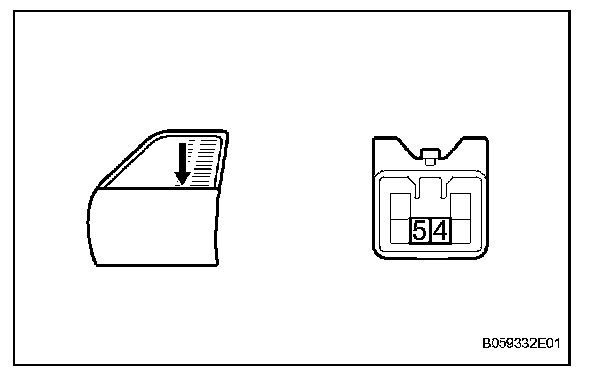 4. When approximately 60 seconds have elapsed after the inspection of the current cut-off, check that the door glass moves down when the power window regulator DOWN switch is pushed.