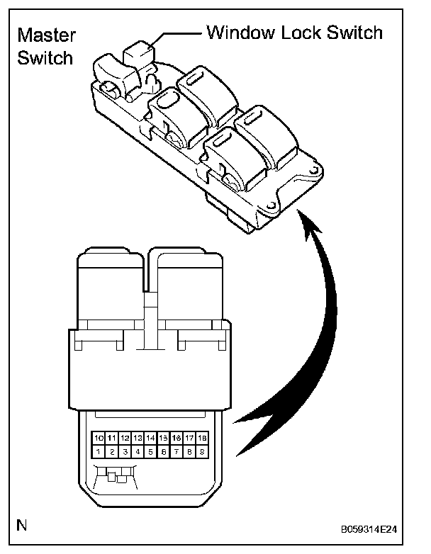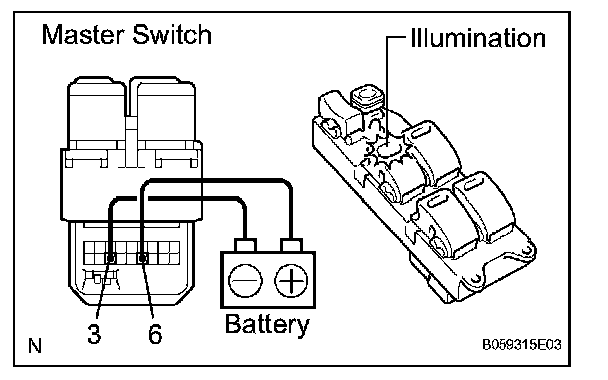 1. INSPECT POWER WINDOW REGULATOR MASTER SWITCH ASSEMBLY