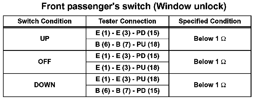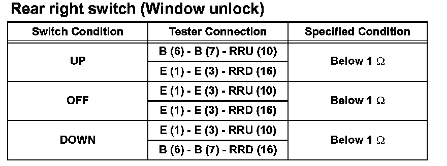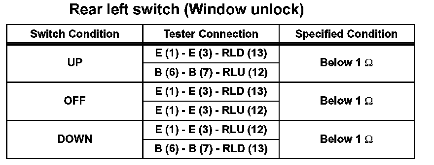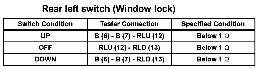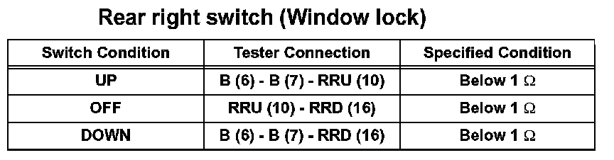 If the result is not as specified, replace the master switch.