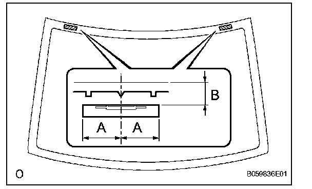 b. Install 2 new windshield glass stoppers No. 2 onto the glass as shown in the illustration.