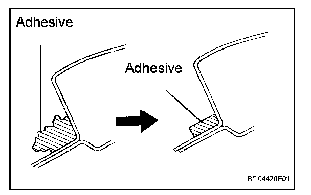 NOTICE: Leave as much adhesive on the body as possible when removing the glass.