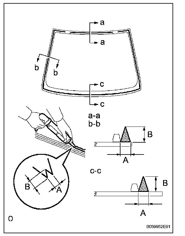 b. Hold the windshield glass in place securely with protective tape or equivalent until the adhesive has completely hardened.