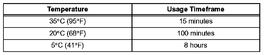 HINT: After cutting off the tip, use all adhesive within the time described in the table below.