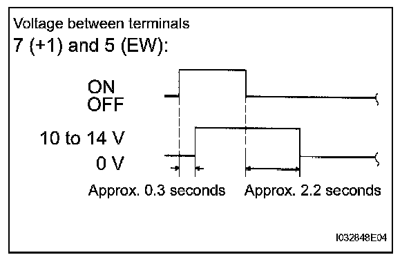 1. Connect the voltmeter (+) terminal to terminal 7 (+1) the connector, the voltmeter (-) terminal to terminal 5 (EW) of the connector.