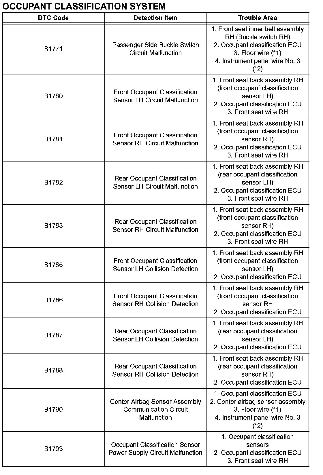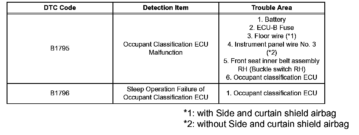 DTCS FOR OCCUPANT CLASSIFICATION SYSTEM