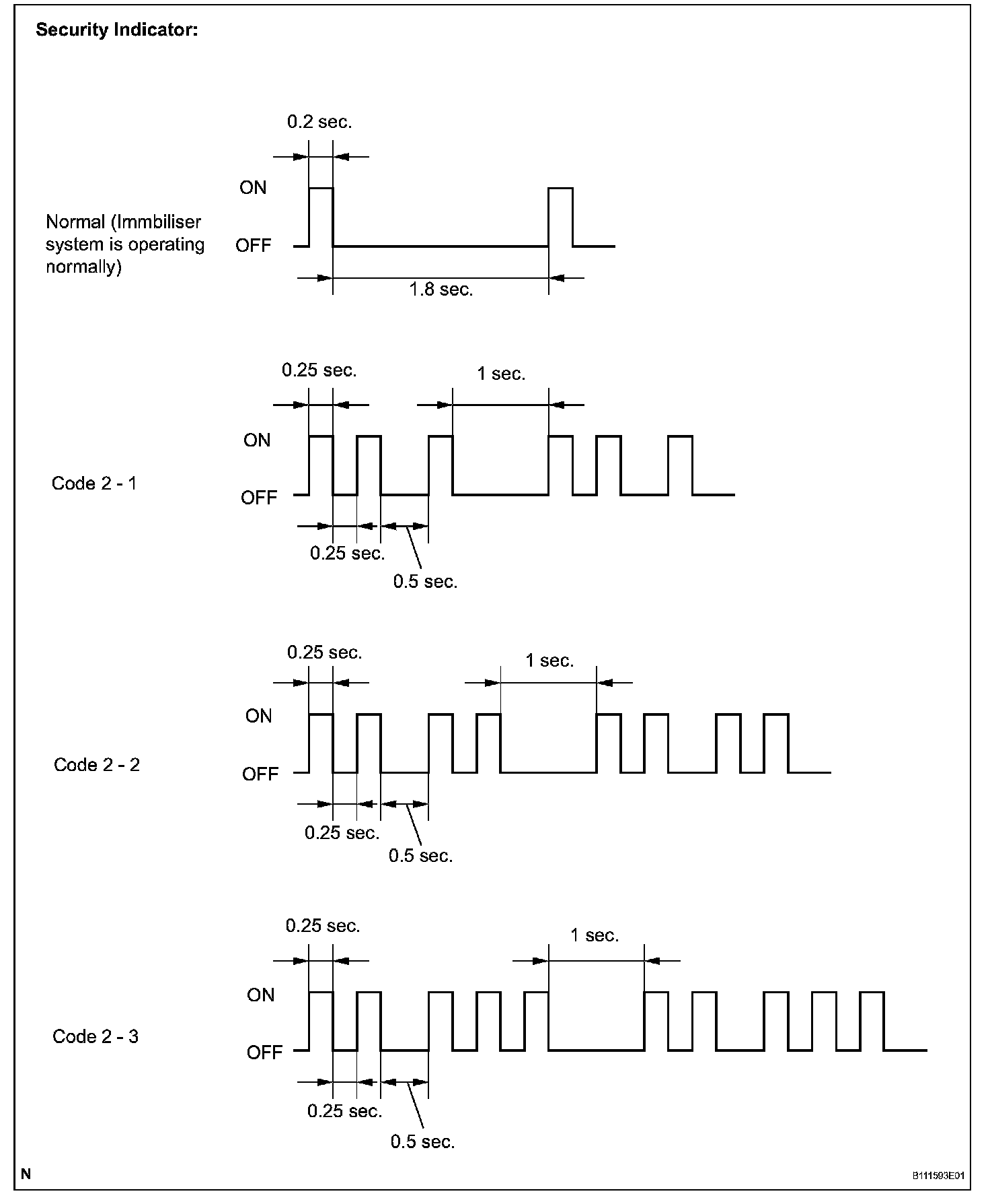 - When the Immobilizer system is operating normally and the key is pulled out, the security indicator blinks continuously.