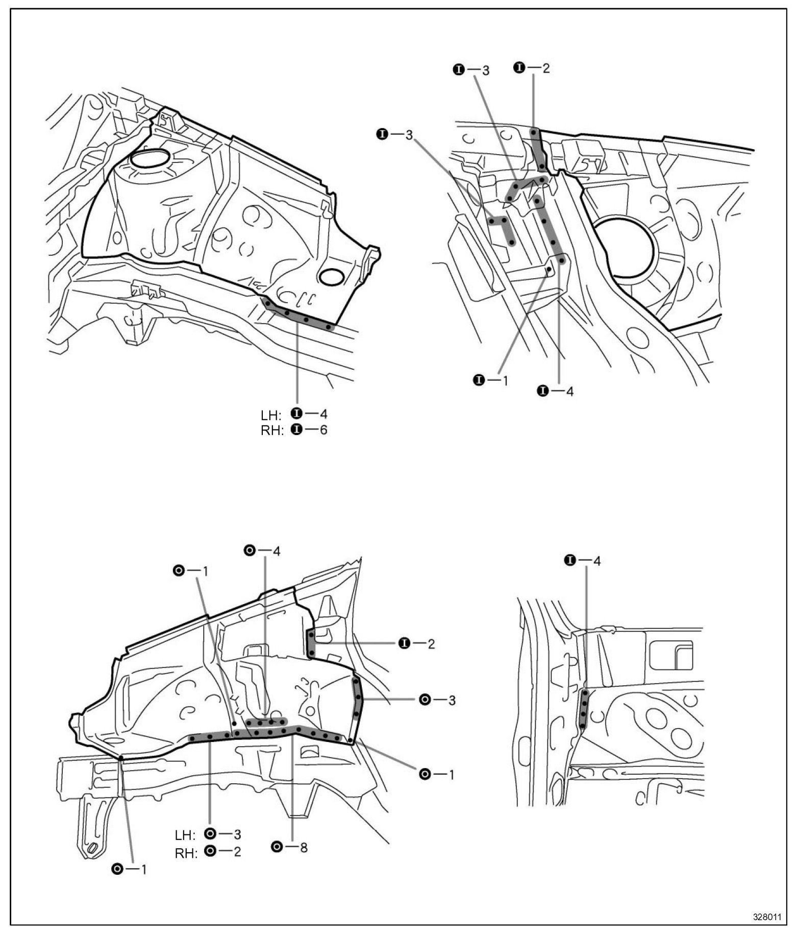 HINT: Inspect the fitting of the front fender and hood, etc. before welding, since this affects the appearance of the finish.