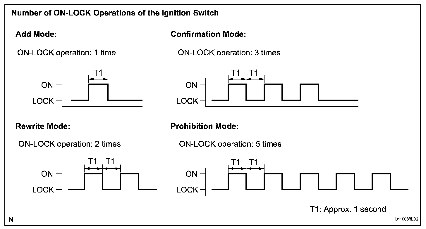 NOTE: If the number of the ON-LOCK operations of the ignition switch is 0, 4 or 6 or more, there will be no response to inform which mode has been selected.