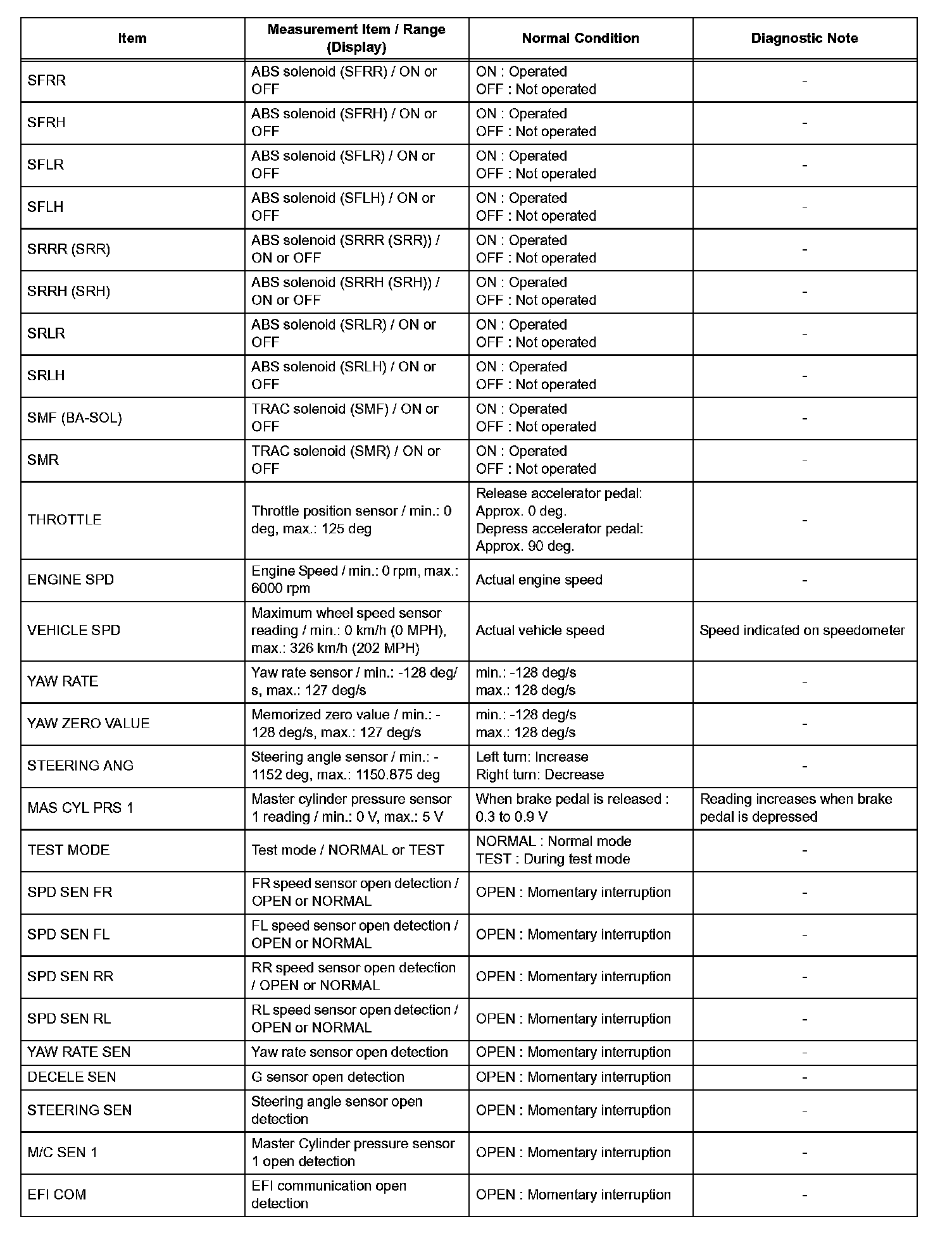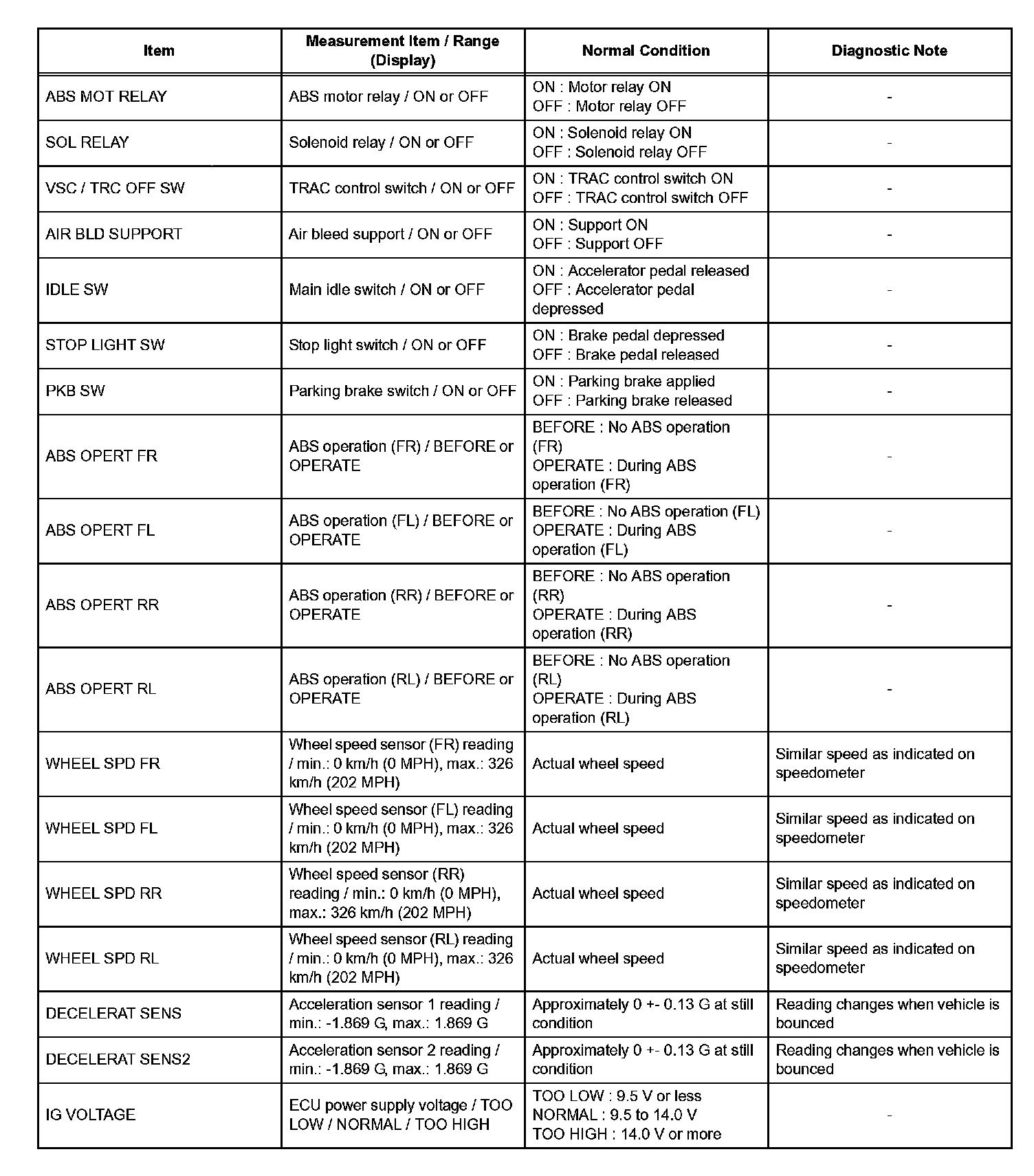HINT: With the intelligent tester connected to the DLC3 and the ignition switch in the ON position, the ABS, TRAC and VSC data list can be displayed. Follow the prompts on the tester screen to access the DATA LIST.
