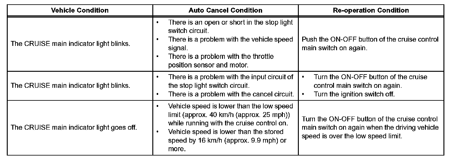 is in operation, the system clears the stored vehicle speed in the ECM and cancels the cruise control operation.