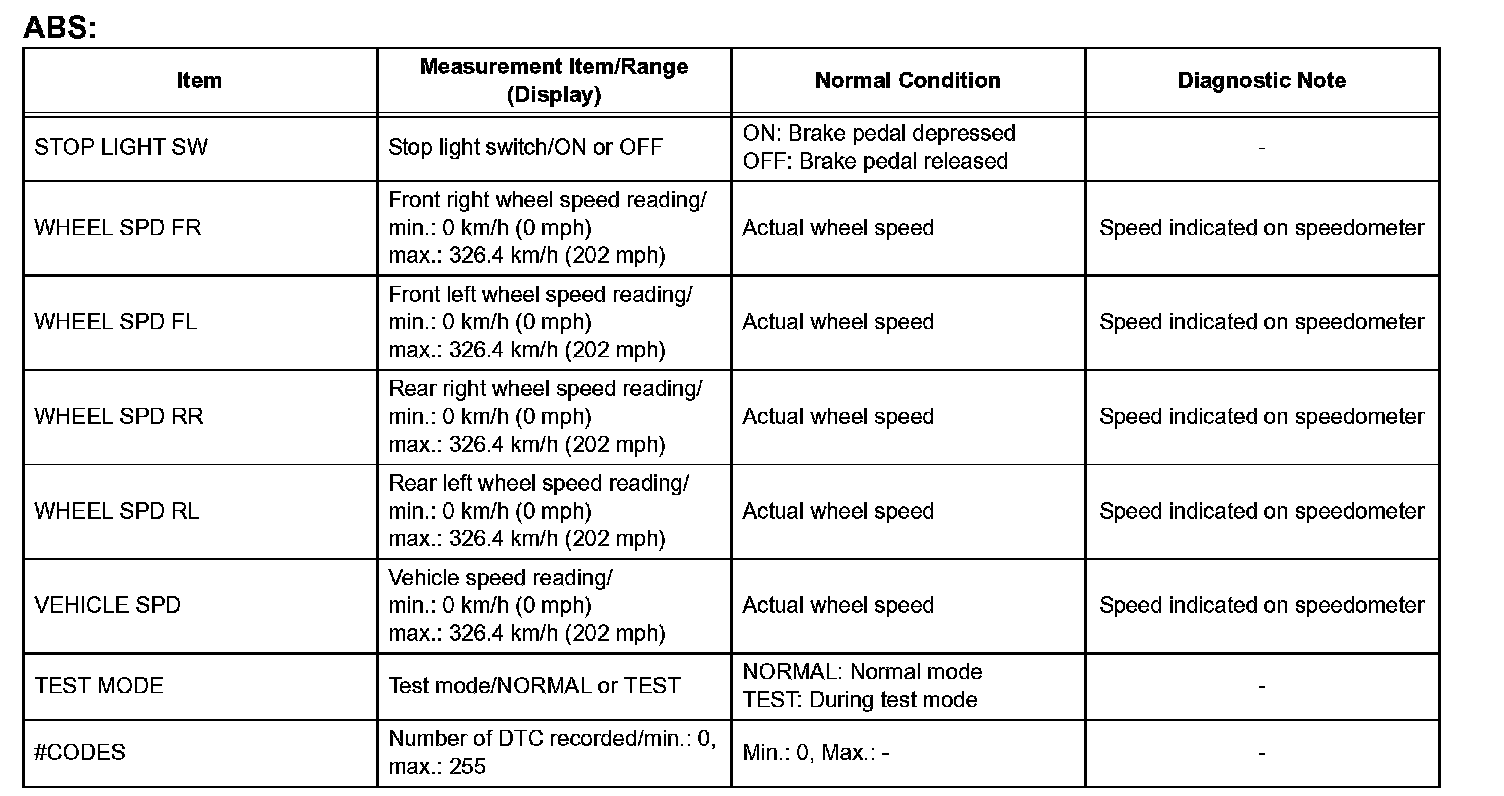 HINT: Perform the ACTIVE TEST using the intelligent tester to operate the ABS warning light. Performing the ACTIVE TEST is one of the methods to shorten labor time. It is possible to display the DATA LIST during the ACTIVE TEST.